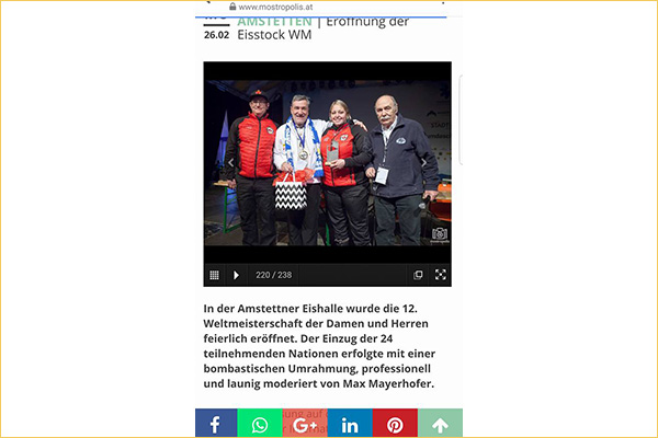 Amstetten 2018 World Championships Our Canadian Ice Stock Federation has been taking part in the Ice Stock Sport World Championships for decades. Over the years, both our Men’s and Women’s teams have brought home medals.